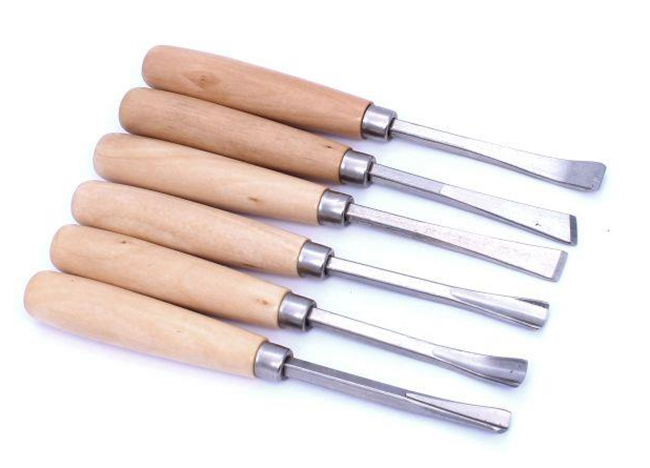 - ein Satz von 6 Schnitz- und Schnitzbeiteln für Holz mit unterschiedlichem Klingenprofil