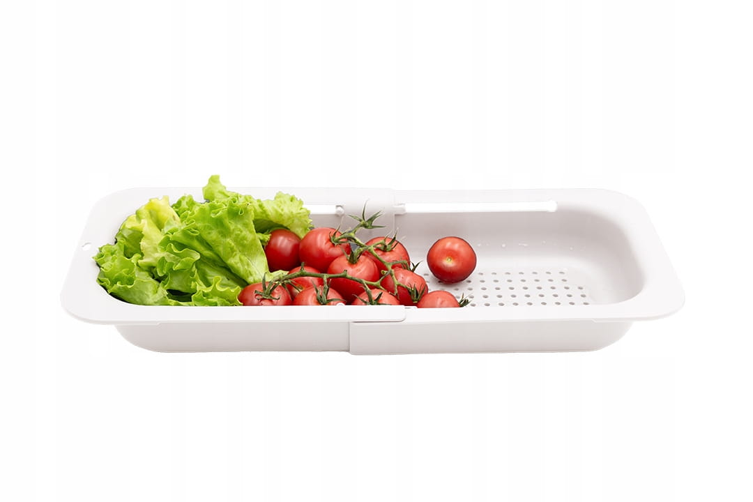 ABTROPFPLATTE FÜR SPÜLE, AUSZIEHBAR, FÜR GEMÜSE, OBST, SCHEIBE, SPÜLE, PP, WEISS