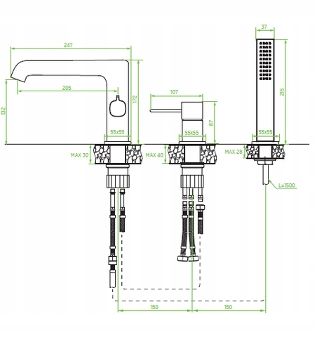 ✅ Stehende 3-Loch Wannenarmatur in Schwarz. Das Modell ist für den Einbau mit Badewannen vorgesehen.
