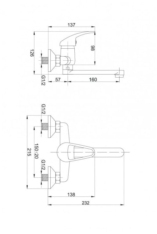 - G ½ ” Exzenteranschluss, Abstand 150 ± 20 mm
