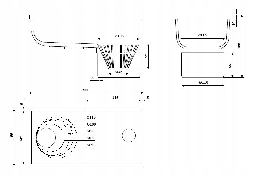 - Auslassdurchmesser - Ø110 mm