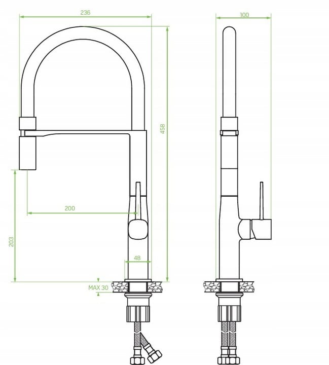 - Der Colina-Wasserhahn ist die perfekte Lösung für jede Küche, unabhängig von ihrer Größe. Das kompakte Design und die Möglichkeit zur Wandmontage ermöglichen eine optimale Nutzung des Arbeitsbereichs. Der flexible U-förmige Ausguss und die magnetische Halterung ermöglichen die vollständige Kontrolle über den Wasserfluss. Zwei Strahlarten – Laminar und Regen – passen sich den unterschiedlichen Bedürfnissen des Benutzers an. Der Colina-Wasserhahn wurde im Hinblick auf Einfachheit und Komfort für den täglichen Gebrauch entworfen.