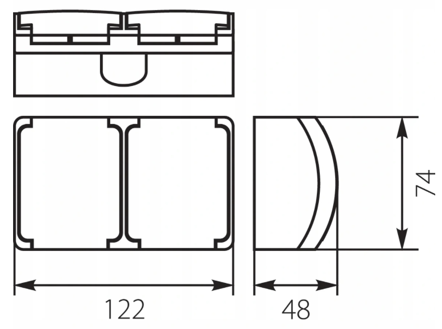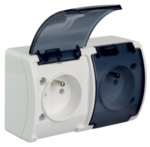 - Typ: Aufputz-Doppelsteckdose mit Rauchklappen,