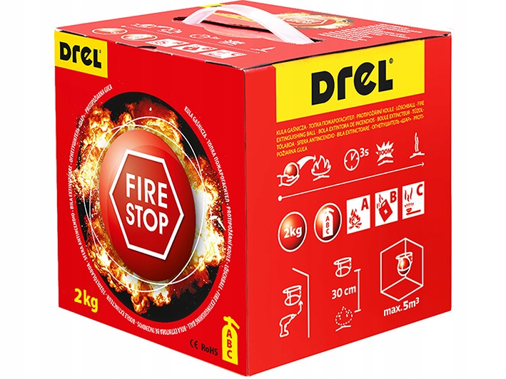 DREL Feuerlöschkugel, Feuerlöscher für Zuhause, Werkstatt und Auto, Pulver, 2 kg