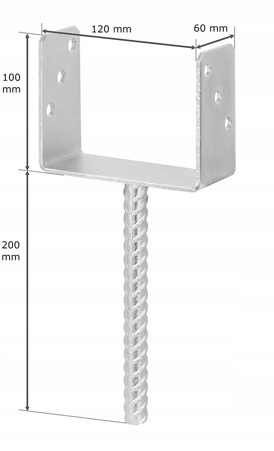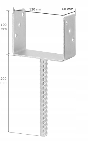 Stahlanker mit gerippter Stange zur Sicherung der Säulen. Aus Stahlblech und Rippenstahl, verzinkt.