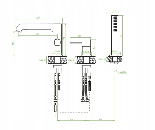 ✅ Das Set besteht aus einer Batterie mit L-förmigem Auslauf, einem Hebel und einem Brauseset. Ein seitlich angebrachter keramischer Umsteller ermöglicht das Umleiten des Wassers zwischen Handbrause und Auslauf.