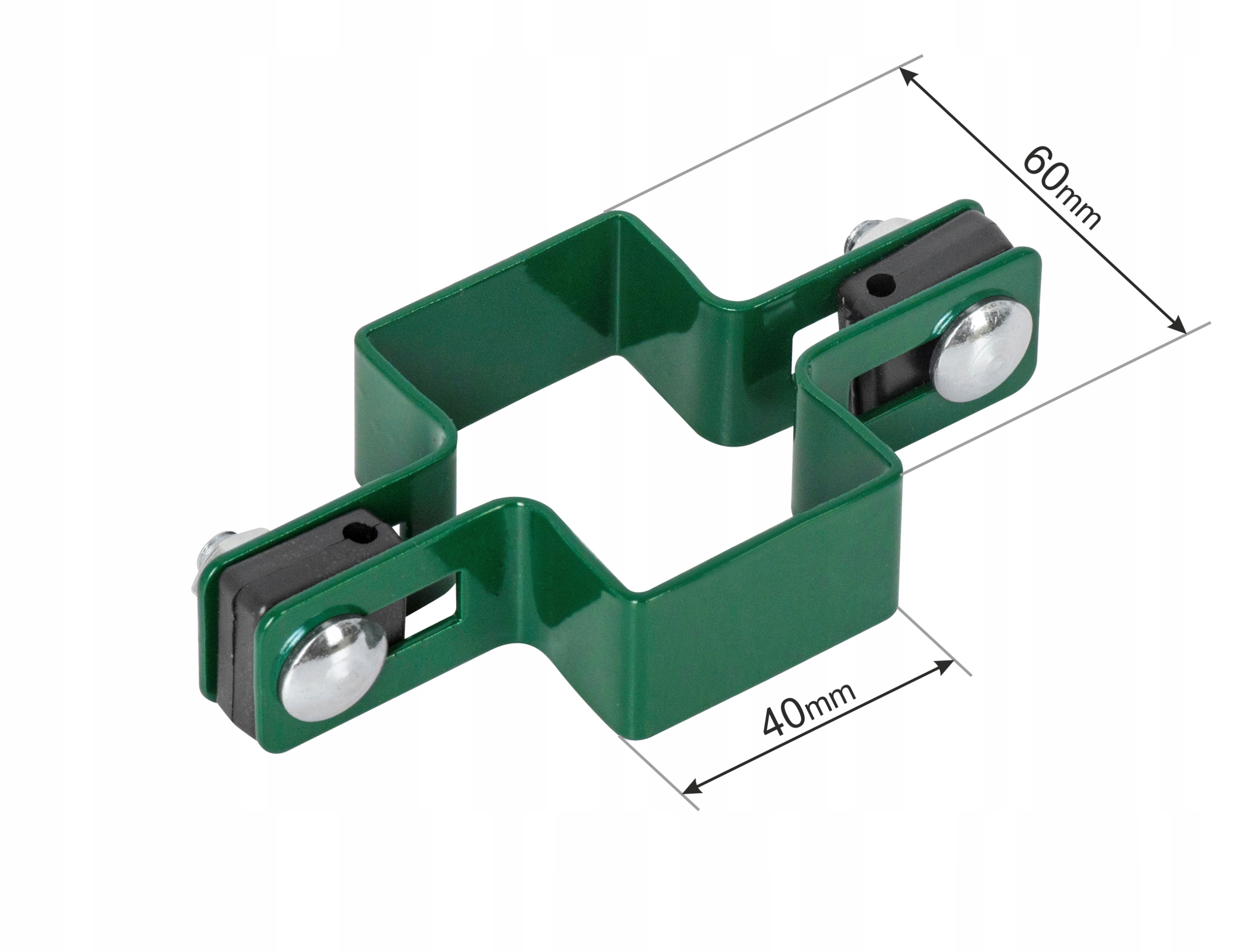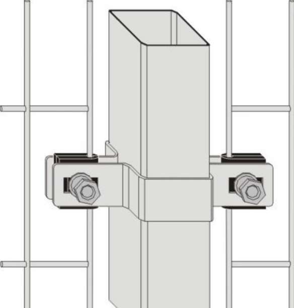 ✅ Komplette Durchgangsklemme zur Montage von Zaunelementen am Pfosten. Abmessung 60mm auf der Montageseite.