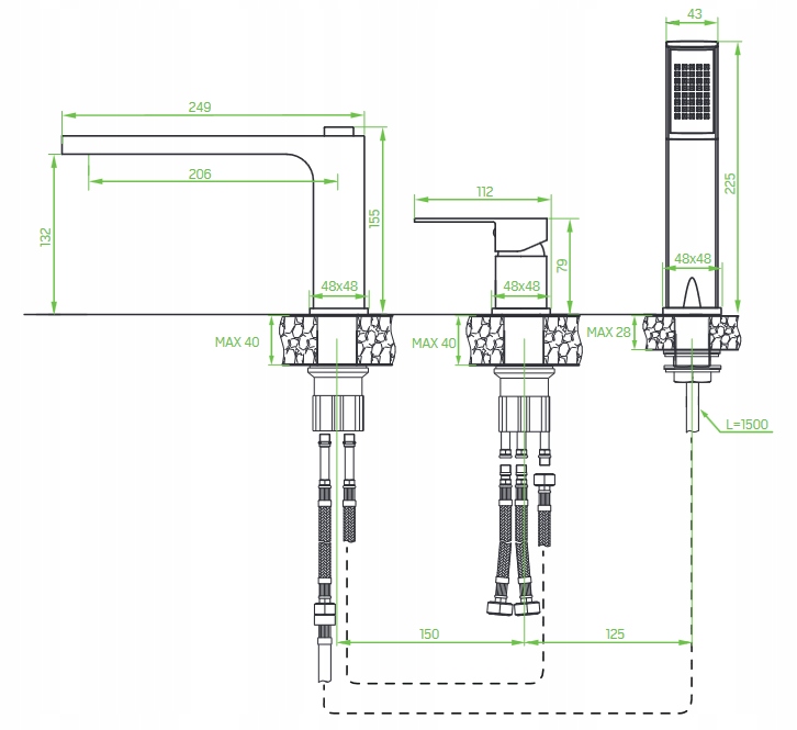 KVADRATO 3-LOCH BADEWANNE SCHWARZ