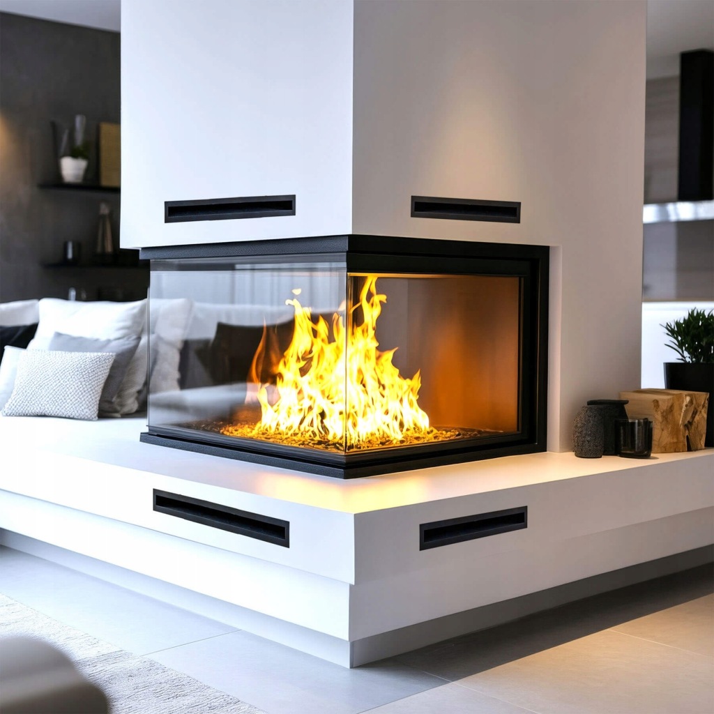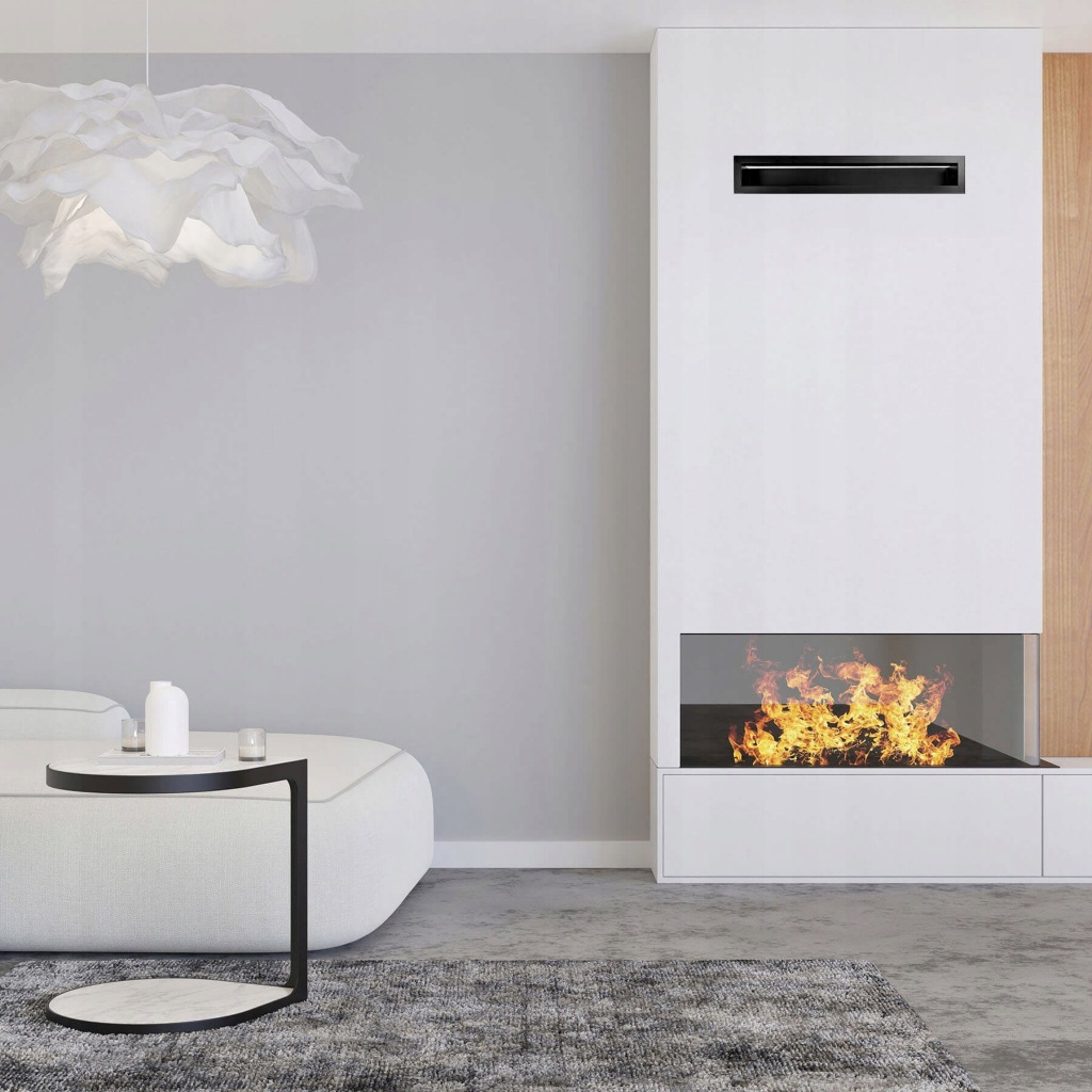 Das Kamingitter bildet einen ästhetischen Abschluss der Kanäle, die die warme Luft vom Kamin verteilen.