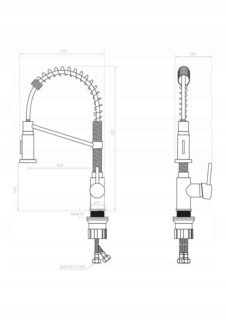 Die Armatur ist mit hochwertigem Chrom verkleidet, was ihr ein modernes Aussehen verleiht und die Eleganz der Küche unterstreicht. Die glänzende Oberfläche passt perfekt zu anderen Elementen von Armaturen und Küchengeräten und lässt sich leicht sauber halten.