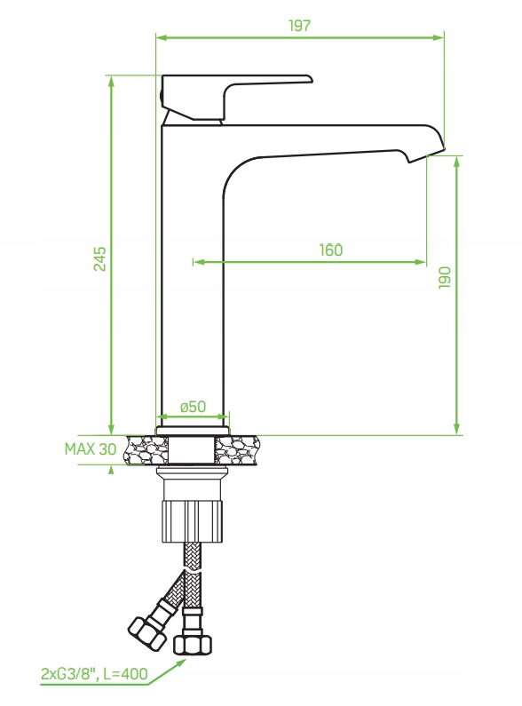 - Länge der Anschlussschläuche: 400 mm