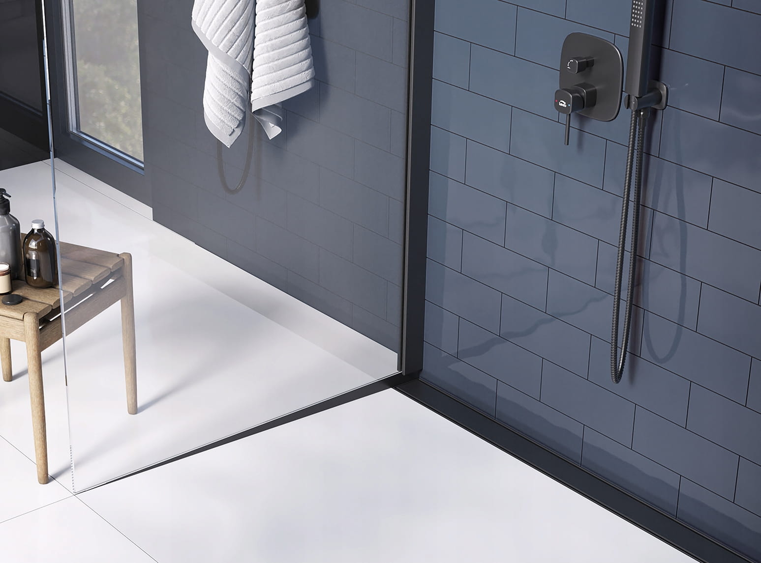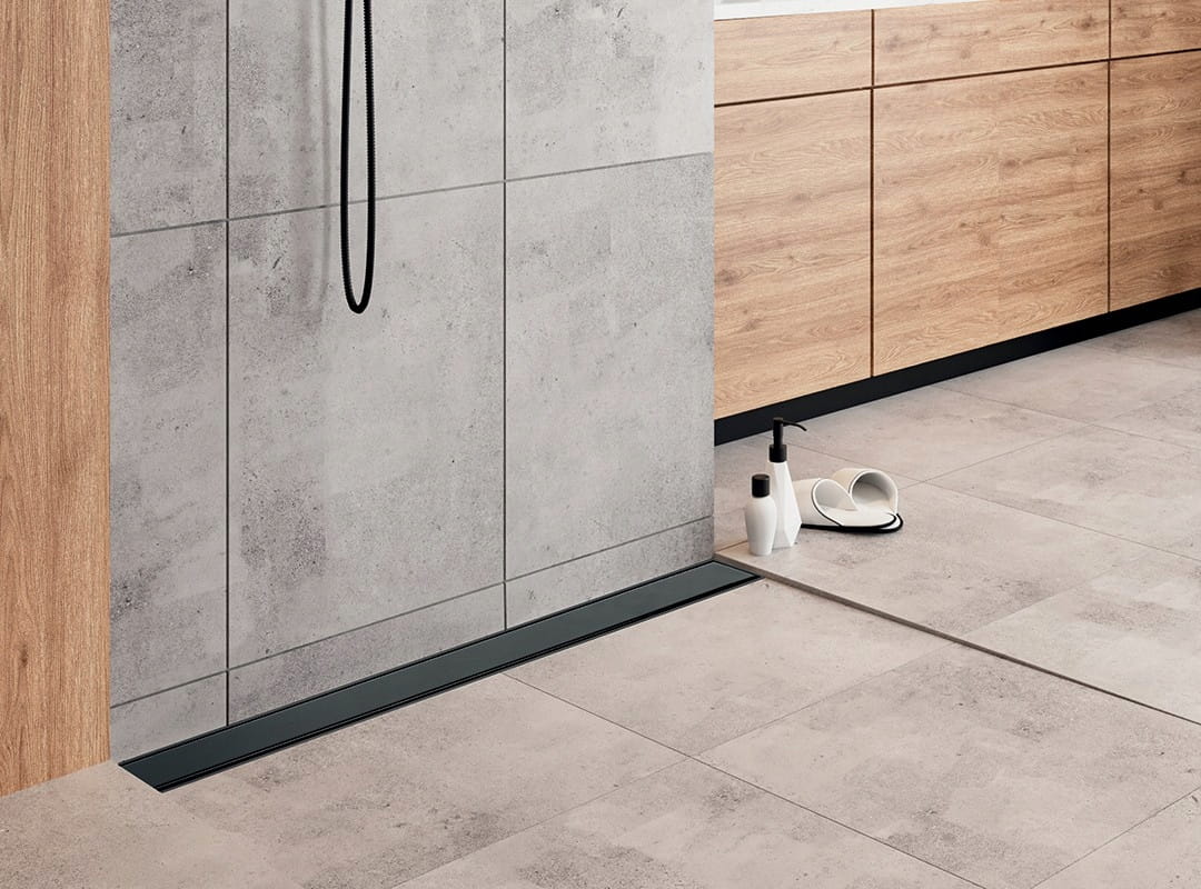LINEARER WANDMONTIERTER BADEZIMMER-DUSCHABLAUF BASSO 100 CM SCHWARZ