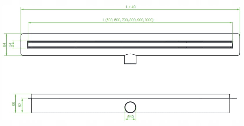 - Abflusslänge: 900 mm