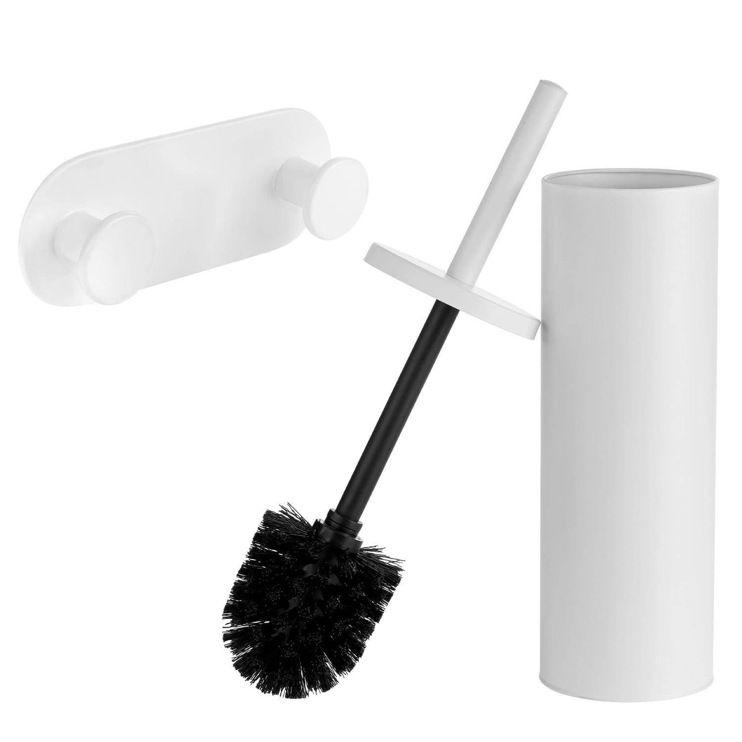 MIRI BADEZIMMER-SET, WC-BÜRSTE + DOPPELTER HANDTUCHHÄNGER, WEISS