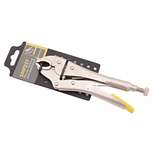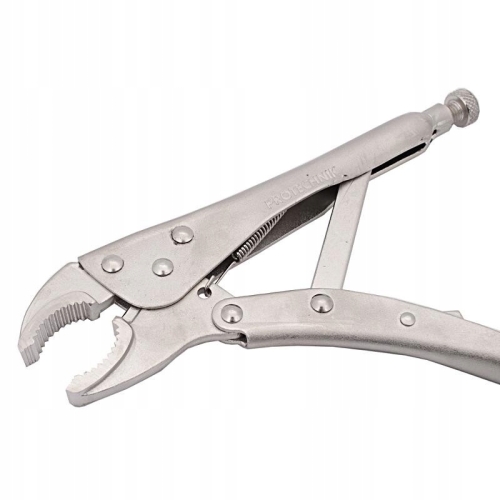 Abgerundete Gripzange zum sicheren Greifen von runden, profilierten und flachen Gegenständen. Perfekt für Auto-, Mechanik-, Schlosser- und Schweißwerkstätten. Selbsthemmender Mechanismus mit gummibeschichtetem Hebel zum schnellen Lösen des Backendrucks. Sie haben eine Schraube zum Einstellen der Öffnung, mit der Sie die Breite des Backenabstands je nach Größe des gegriffenen Materials einstellen können.