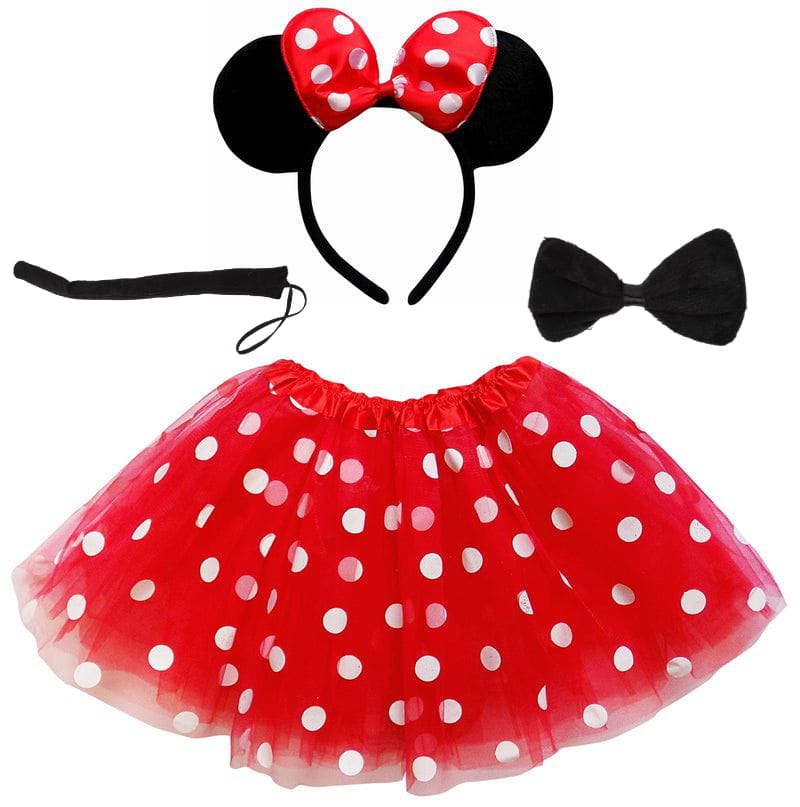 Minnie-Mouse-Outfit, Mickey-Kostüm, Rock, Schwanz, Stirnband, Ohren, Fliege, Töpfchen