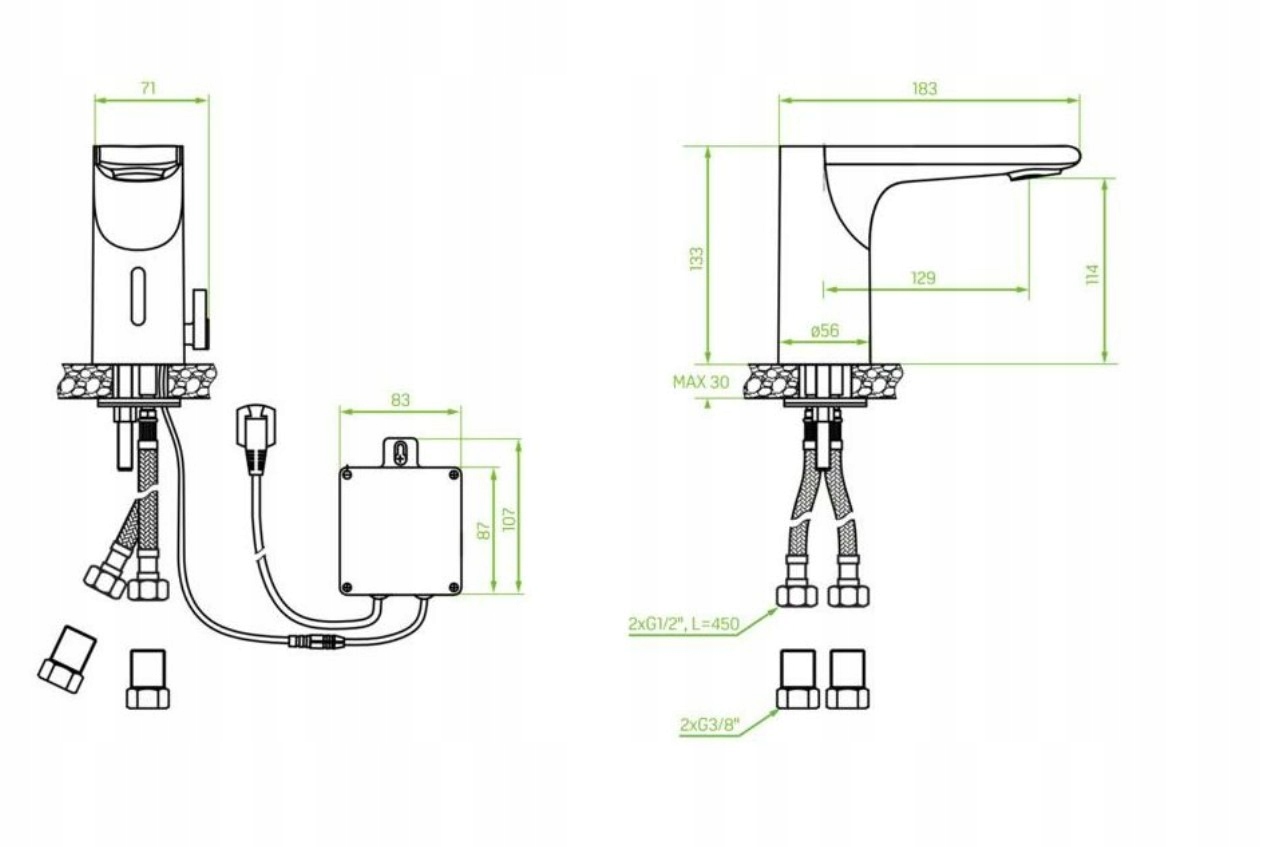 ❇️ Der Strahl fließt aus, wenn Sie Ihre Hand auf den Sensor legen, der Bewegungen in einem Radius zwischen 12 und 18 cm erkennt. Der Wasserfluss stoppt einen Moment, nachdem Sie Ihre Hände unter dem Auslauf entfernt haben, oder nach einer Minute, wenn der Sicherheitsschalter zu funktionieren beginnt.