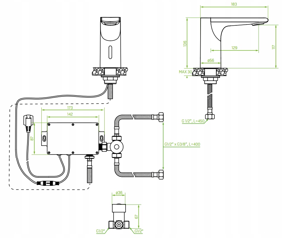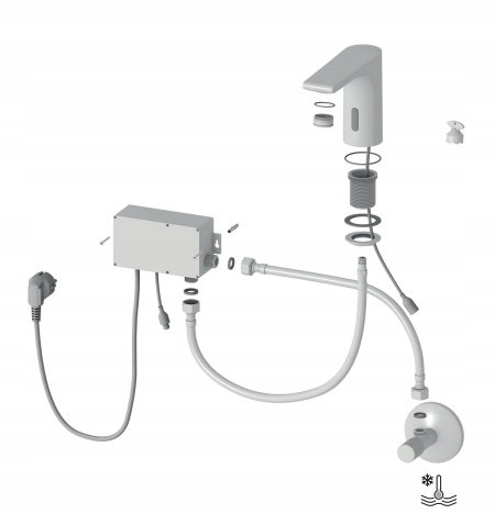 ✅ Der berührungslose Wasserhahn Plato mit externer Temperaturregelung empfiehlt sich besonders für Firmen- und öffentliche Badezimmer.