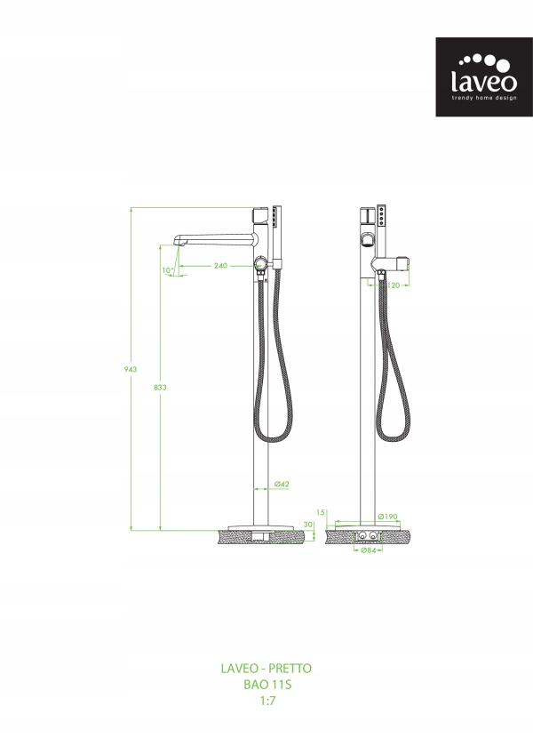 Laveo Pretto BAO_711S freistehende Wannenbatterie