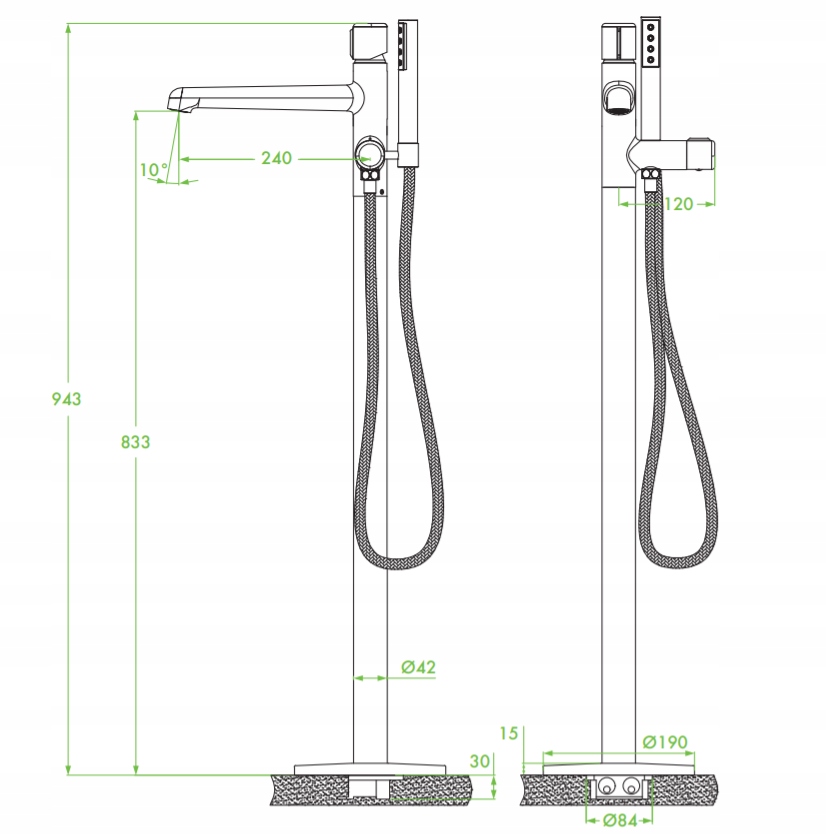 PRETTO HOHE FREISTEHENDE BADEWANNENBATTERIE