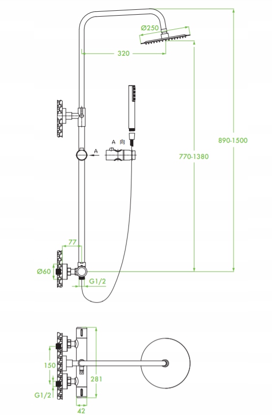 PRETTO SÄULE DUSCHE DUSCHE BATTERIE THERMOSTAT