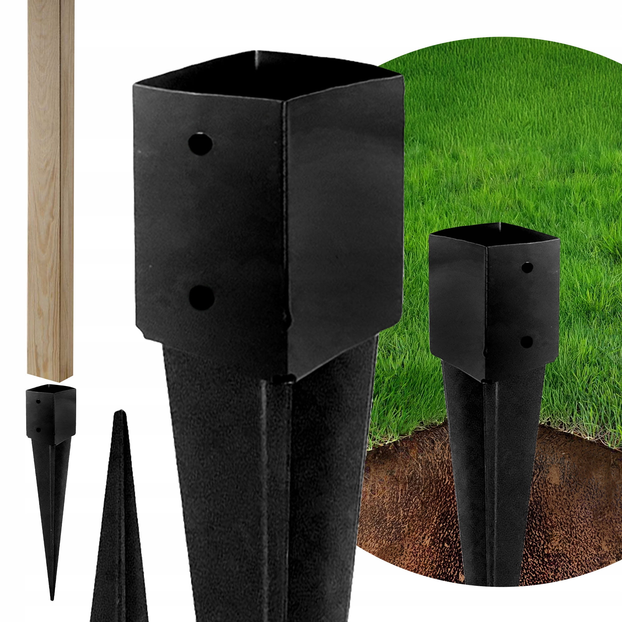 Pfostenfuß-Stütze, quadratische Anker für den Garten, 100 x 750 mm, Schwarz
