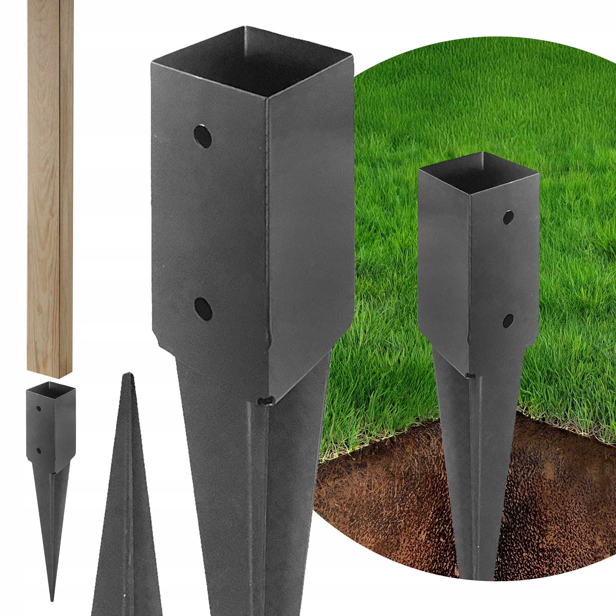 Quadratischer Hit-Anker, Pfostenfuß, Gartenstütze, 70 x 750 mm, Graphit