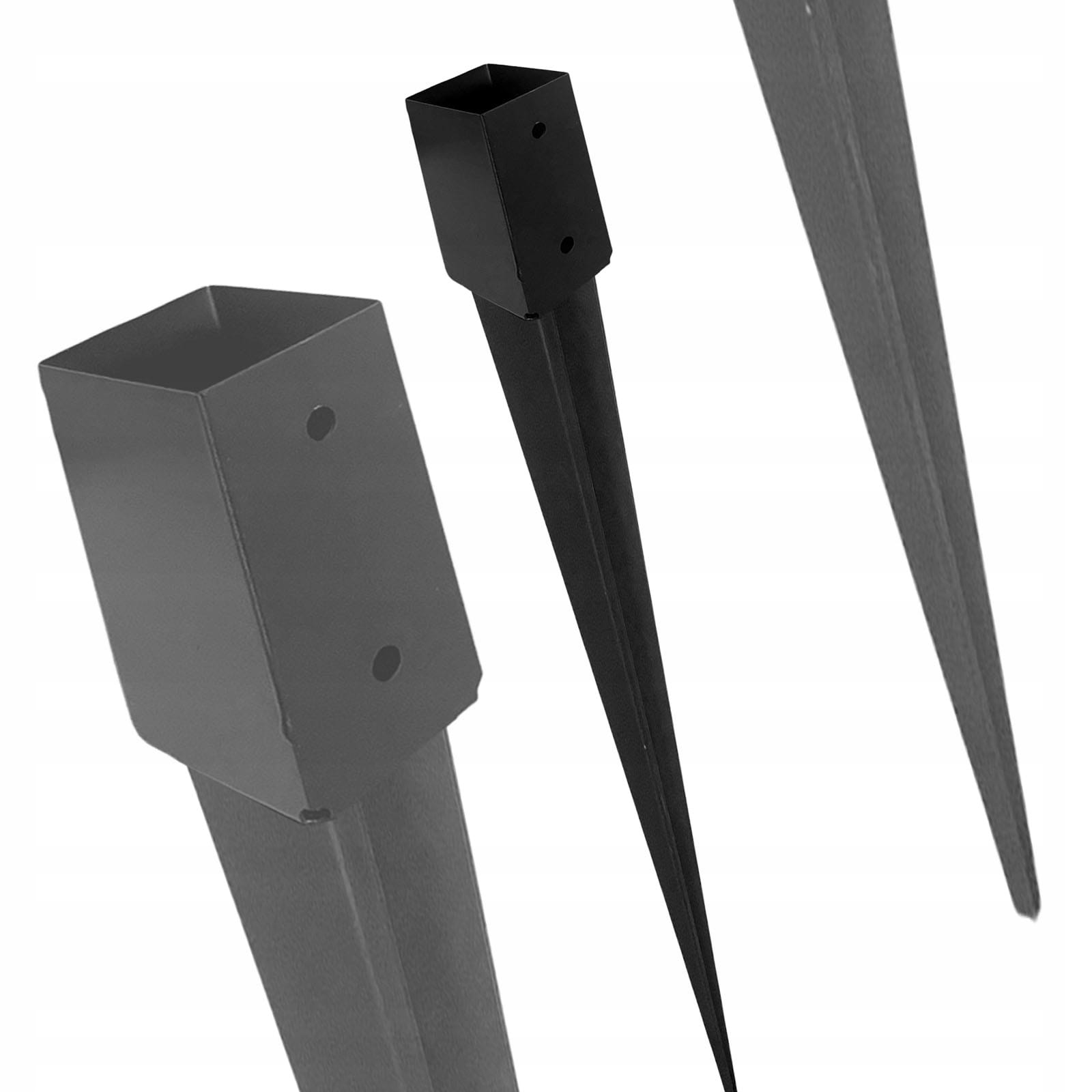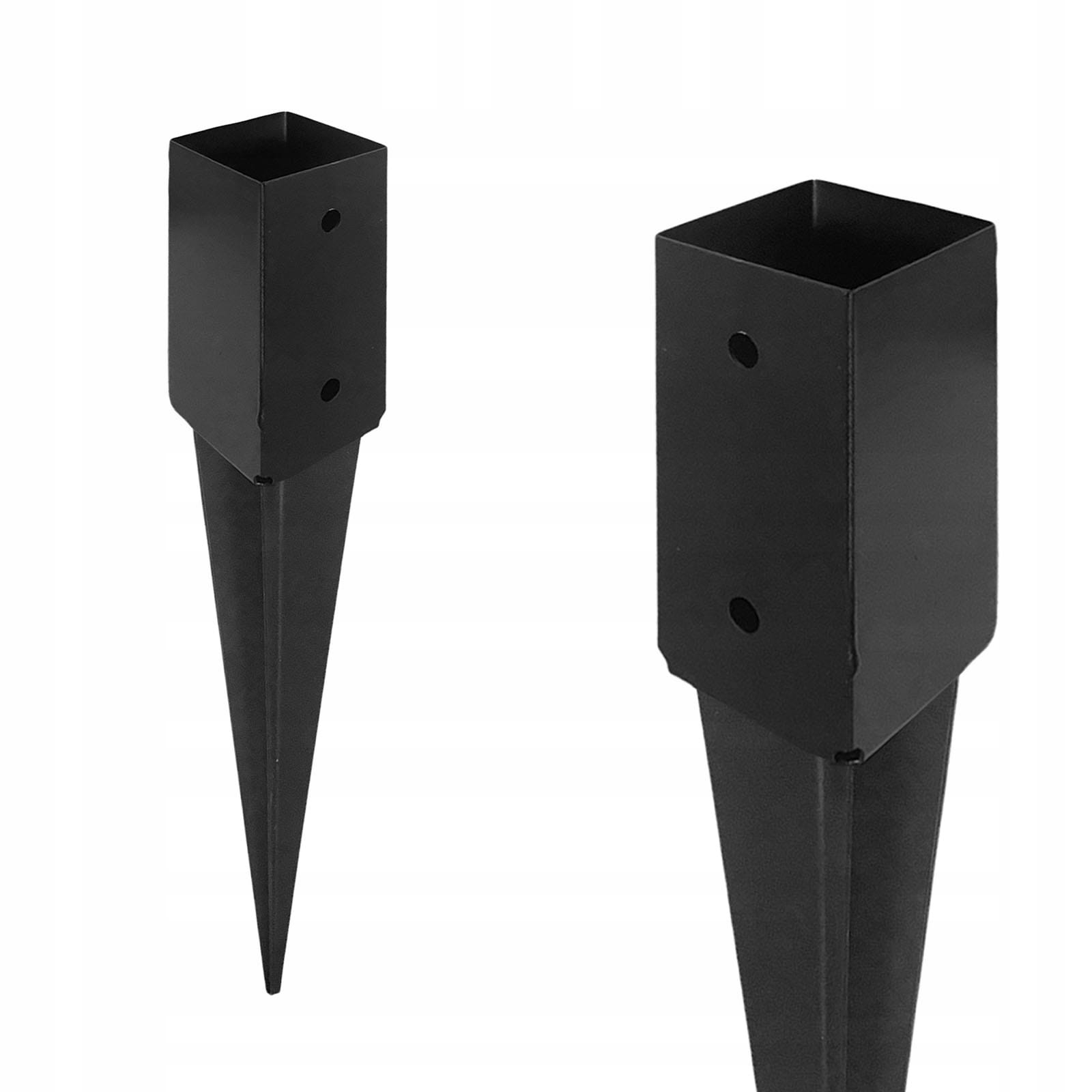 Quadratischer Pfostenfußanker zum Einschlagen für den Garten, 60 x 750 mm, Schwarz