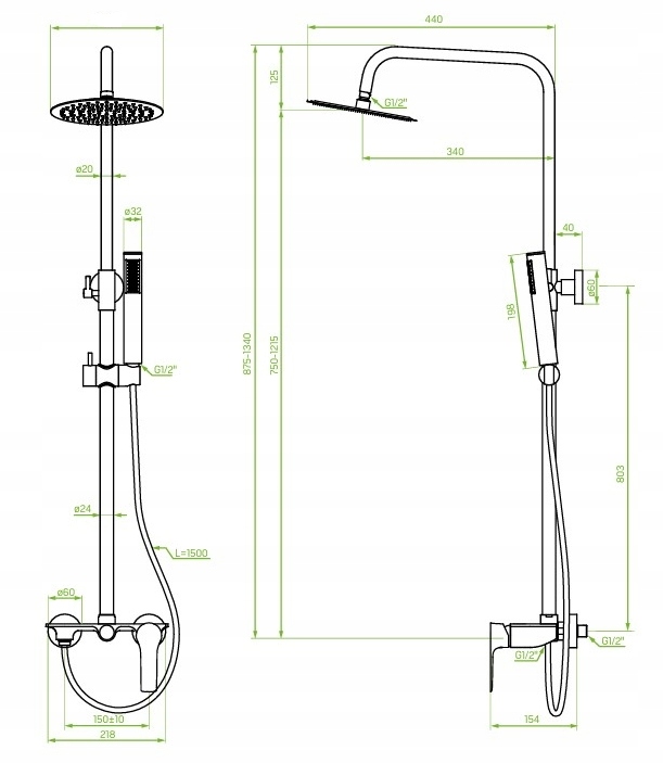 ⭐ Der große Vorteil der Raila-Säule ist das in der Handbrause und der Regendusche verwendete Anti-Stein-System, das die Reinigung von Sedimenten erleichtert.