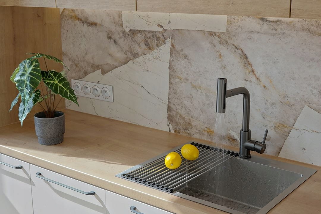 Eine Küchenarmatur in Chromoptik ist die perfekte Wahl für Menschen, die Wert auf dezente Eleganz und modernes Design legen. Sein gedämpfter Farbton passt perfekt zu hellen und dunklen Arbeitsplatten und schafft ein stimmiges Ganzes in Küchen, die im modernen, industriellen oder skandinavischen Stil eingerichtet sind. Chrom ist eine zeitlose Farbe, die dem Innenraum Tiefe und edlen Charakter verleiht.