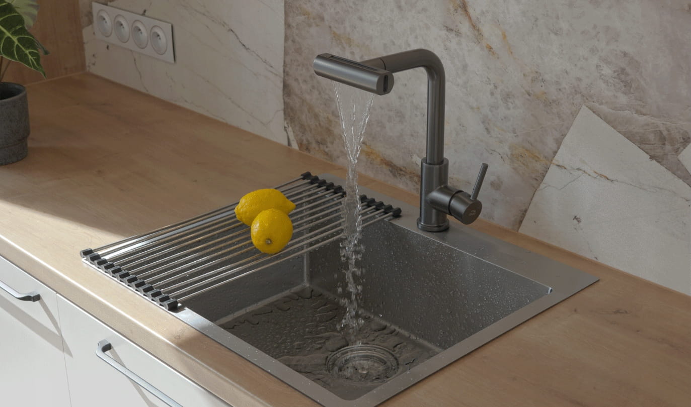 Die Chromoberfläche passt perfekt zu verschiedenen Spülbeckentypen – von Granit bis Stahl. Dabei handelt es sich um ein Modell, das moderne Technik mit zeitlosem Design verbindet und so eine ideale Lösung für anspruchsvolle Anwender darstellt.
