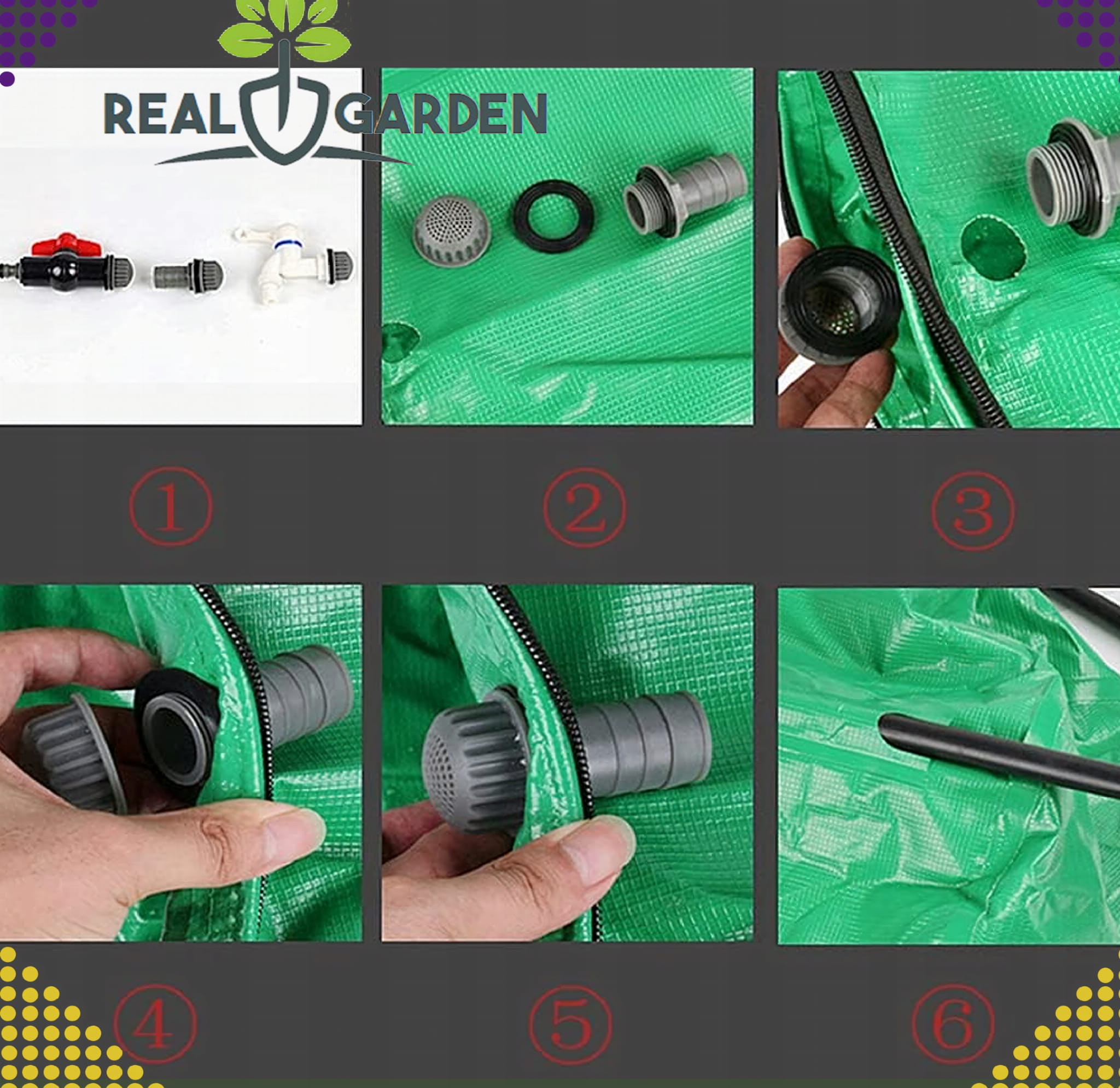 Der untere Teil des Behälters verfügt über ein praktisches Ablassventil, das den Anschluss eines Gartenschlauchs zum Bewässern des Gartens oder der Pflanzen erleichtert.