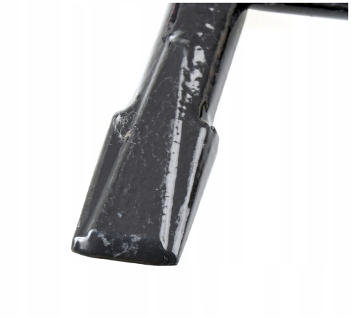 - Das Ganze ist pulverbeschichtet, der Kopf ist in Form eines Meißels gehärtet und der Schläger hat ein konisches Ende.