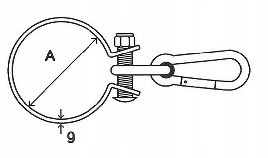 - Metallklemme fi 100 mm mit einem Karabiner ist für einen Heimspielplatz bestimmt.