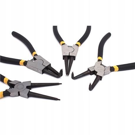 Zangensatz für Seger-Ringe, Griffe mit komfortabler Isolierschicht überzogen. Das Set ist in einem soliden Etui aus strapazierfähigem Material verpackt. Zangensatz 4-tlg. 6 Zoll: Innen gerade Außen gerade Innen gerade Außen gerade.