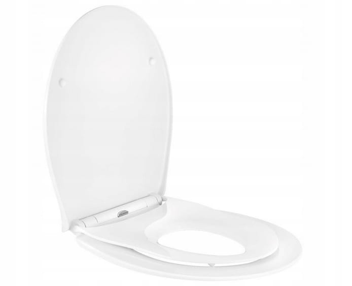 Eleganter und schlanker Slim 2in1 Slow-Close WC-Sitz - mit abnehmbarer Zusatzauflage für das Erlernen des Toilettengangs durch Kinder.