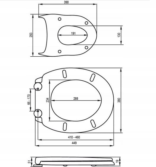 - durch die exzentrische Verstellung der Halterung lässt sich der Sitz leicht an die meisten Toilettenschüsseln anpassen, sowohl kompakt als auch hängend
