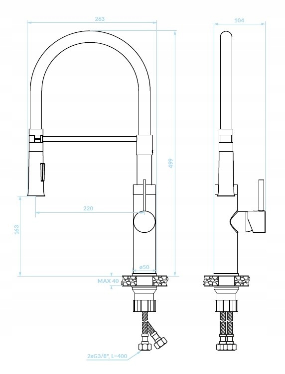 - Länge der Anschlussschläuche: 40 cm 3/8" im Lieferumfang enthalten