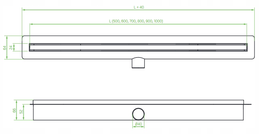 - Ablauflänge: 500 mm