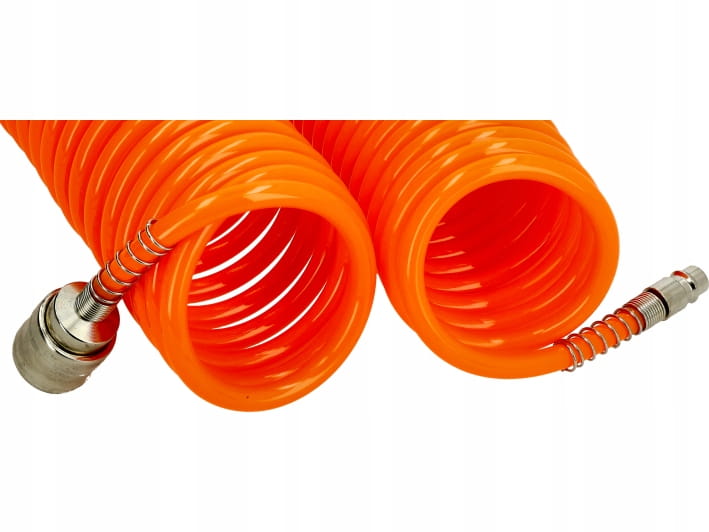 Spiraldruckschlauch aus flexiblen und widerstandsfähigen Materialien (Polyurethan). Dank der verwendeten Materialien zeichnet sich der Schlauch durch hohe Flexibilität und erhöhte Kältebeständigkeit aus. Das Spiraldesign erleichtert das Manövrieren und Aufrollen, ohne dass es zu Verhedderungen kommt. Der Schlauch ist ideal für den Anschluss von Druckluftwerkzeugen an einen Kompressor und sorgt für einen effizienten Luftstrom und Langlebigkeit im täglichen Gebrauch.