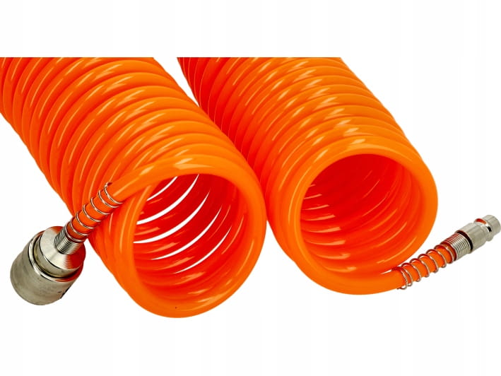 Spiraldruckschlauch aus flexiblen und widerstandsfähigen Materialien (Polyurethan). Dank der verwendeten Materialien zeichnet sich der Schlauch durch hohe Flexibilität und erhöhte Kältebeständigkeit aus. Das Spiraldesign erleichtert das Manövrieren und Aufrollen, ohne dass es zu Verhedderungen kommt. Der Schlauch ist ideal für den Anschluss von Druckluftwerkzeugen an einen Kompressor und sorgt für einen effizienten Luftstrom und Langlebigkeit im täglichen Gebrauch.