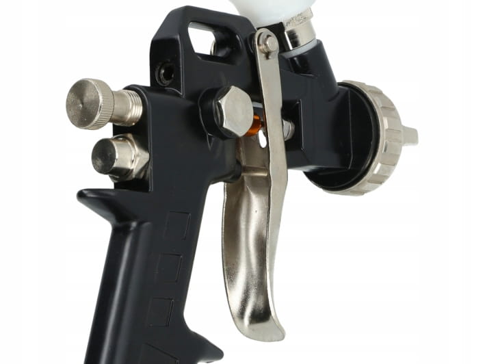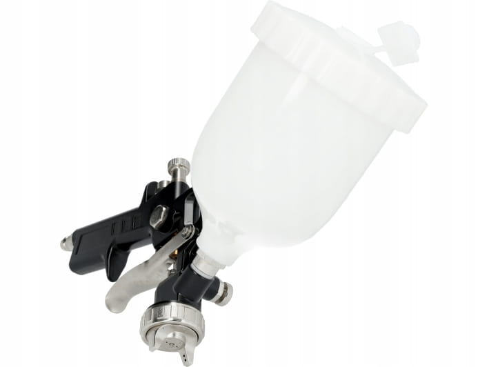 Lackierpistole mit einem oberen Tank mit einem Fassungsvermögen von 0,6 Litern und einer Düse mit einem Durchmesser von 1,5 mm. Der Tank besteht aus Kunststoff, wodurch die Waffe leicht und komfortabel zu bedienen ist. Diese Pistole ist ideal zum Auftragen von Farben, Lacken und anderen Farbbeschichtungen und sorgt für eine gleichmäßige und präzise Oberflächenabdeckung. Dank der 1,5-mm-Düse eignet sich die Pistole perfekt zum Auftragen mitteldicker Beschichtungen und eignet sich daher für Arbeiten in Werkstätten, Garagen und für Heimwerker.