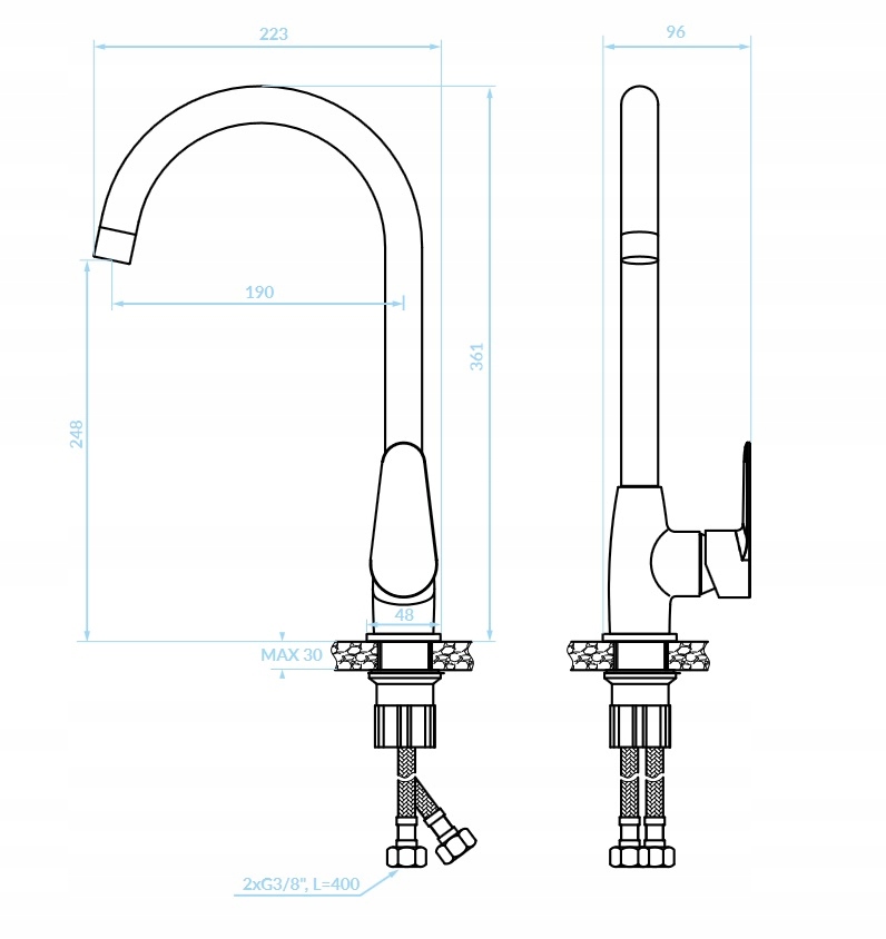 - Länge der Anschlussschläuche: 400 mm