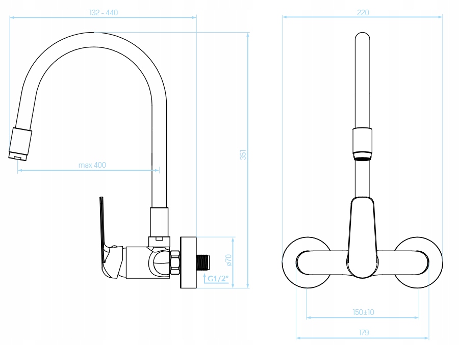 - Auslaufbereich: max 440 mm