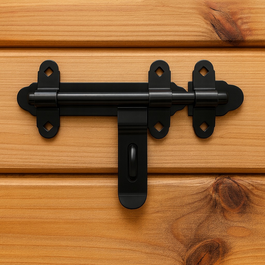 Der Riegel ist ein universelles Sicherheitselement für Garagentore, Einfahrtstore und Gartentüren. Er besteht aus dickem, schwarz lackiertem Blech und wirkt dadurch besonders einheitlich. Der Riegel verfügt außerdem über eine Vorhängeschlossfunktion. Dank seiner robusten Konstruktion ist er eine langlebige Sicherheitslösung und eignet sich sowohl für den Innen- als auch für den Außenbereich.