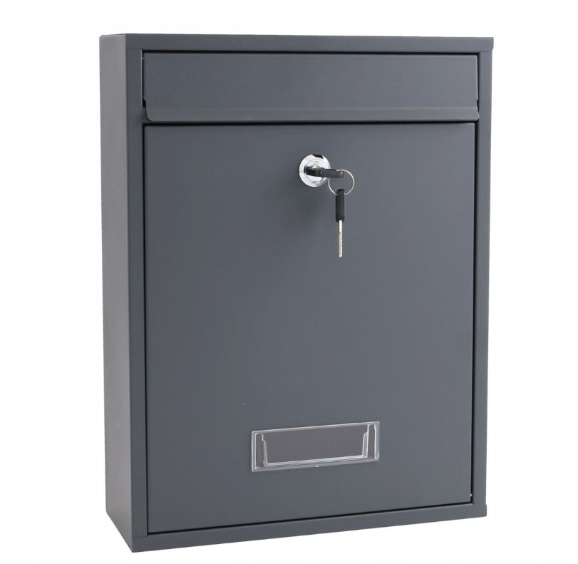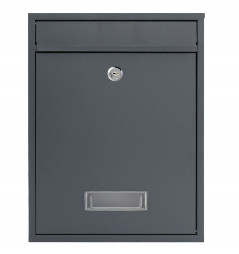 - Der anthrazitgraue Briefkasten VICKY ist eine praktische und stilvolle Lösung zur Aufbewahrung von Briefen. Der aus Stahl gefertigte und mit einer langlebigen Pulverbeschichtung versehene Briefkasten ist kratzfest und witterungsbeständig. Sein Design fügt sich nahtlos in moderne Gebäudefassaden, Zäune und Zaunelemente ein.
