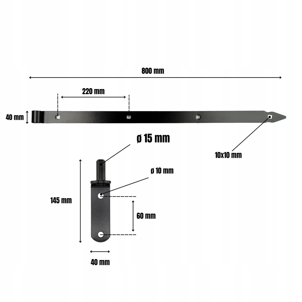 Verschraubtes Torbandscharnier, Türhaken, Torgriff, 800 mm, schwarz