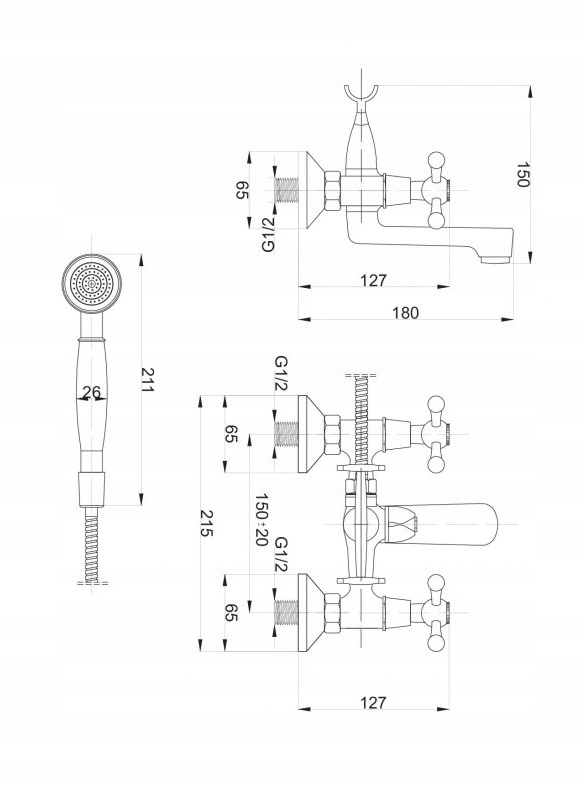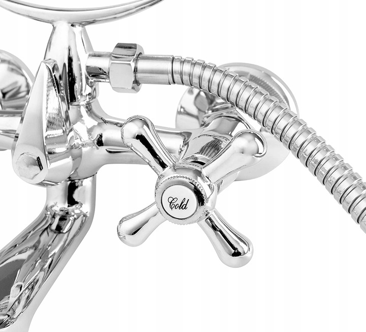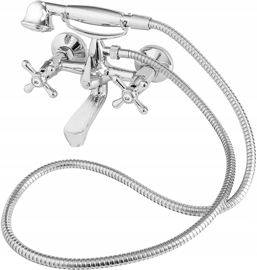 WANDMONTIERTE BADEWANNE DUSCHE RETRO BADEZIMMER WASSERHAHN