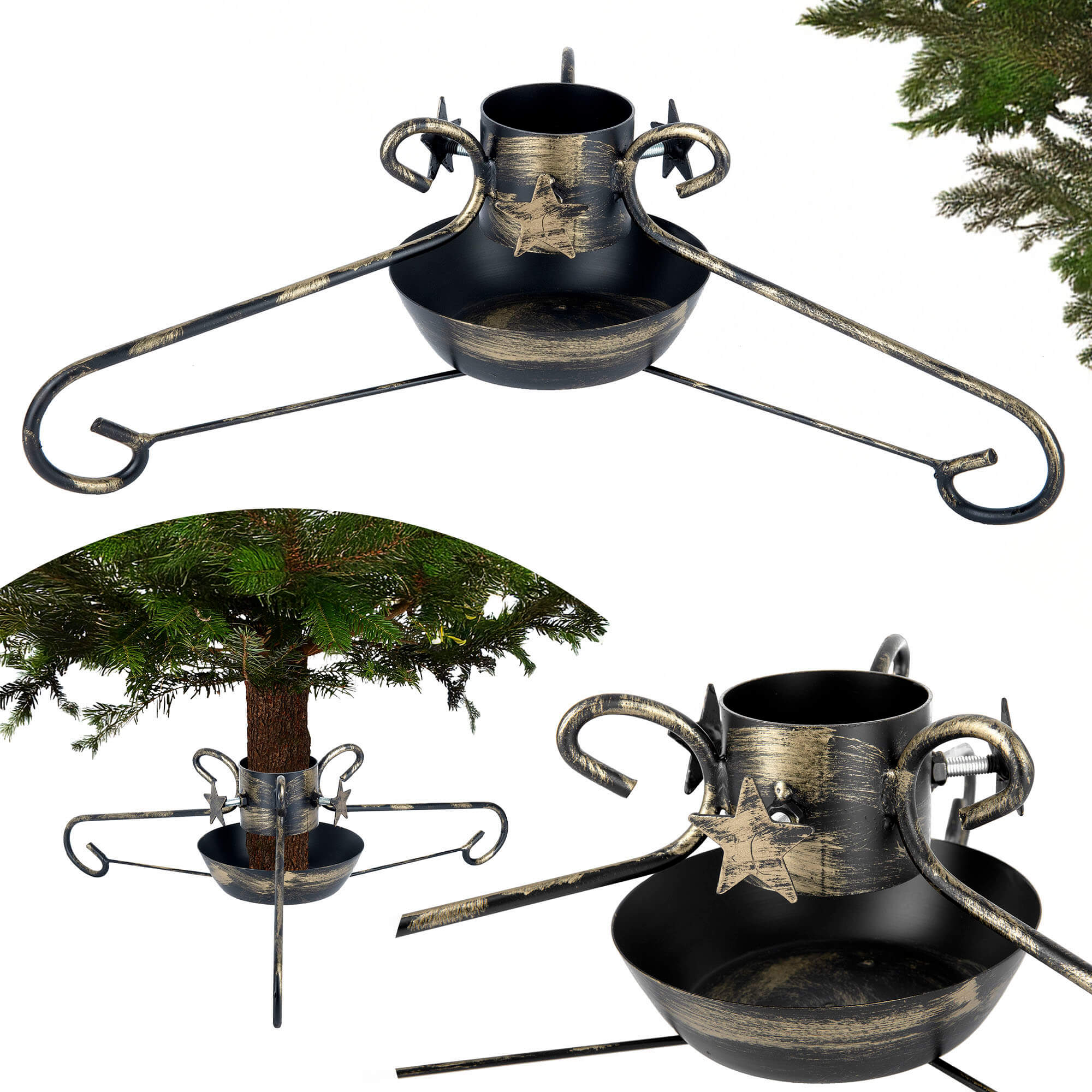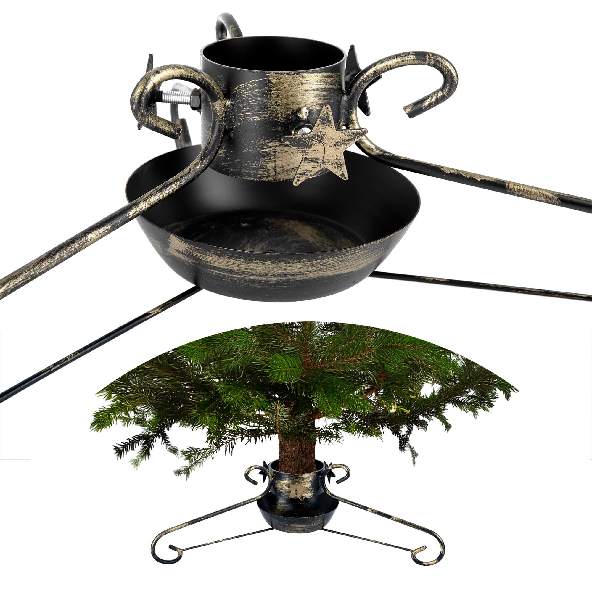 WEIHNACHTSBAUMSTÄNDER MIT SCHALE, KLEINER WEIHNACHTSBAUM, METALL, DEKORATIVER STERN