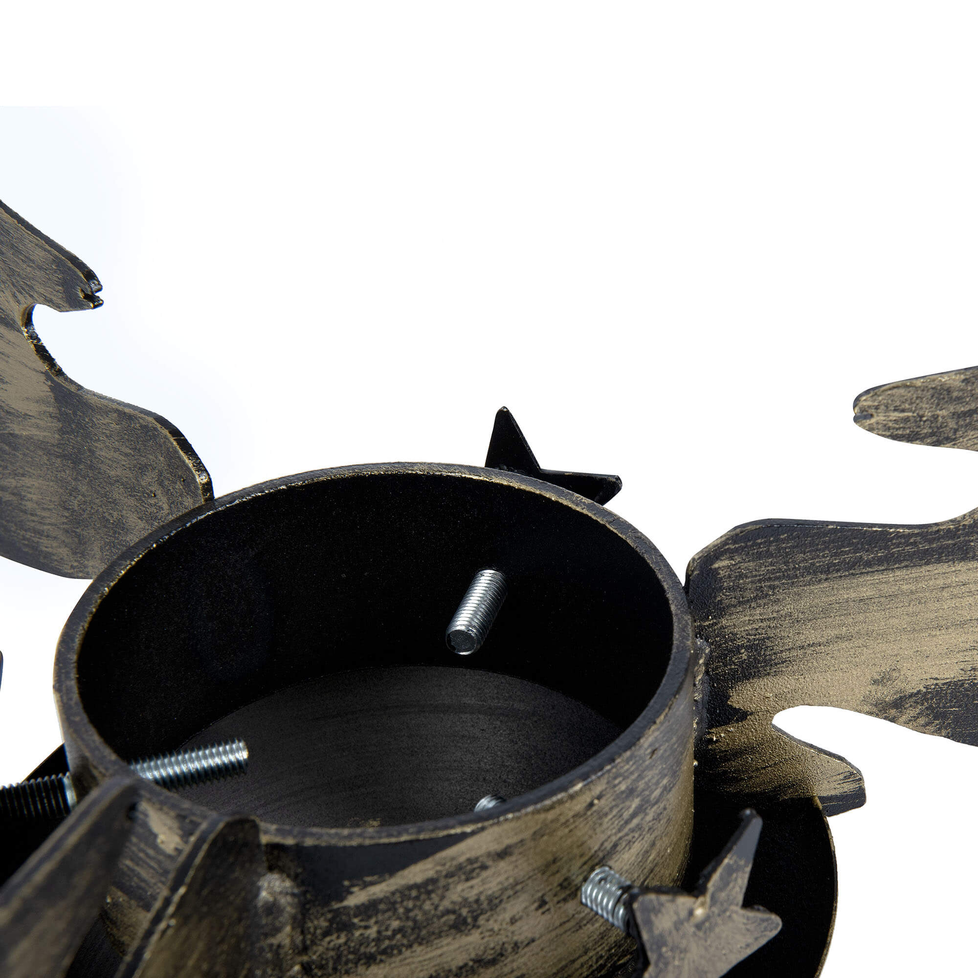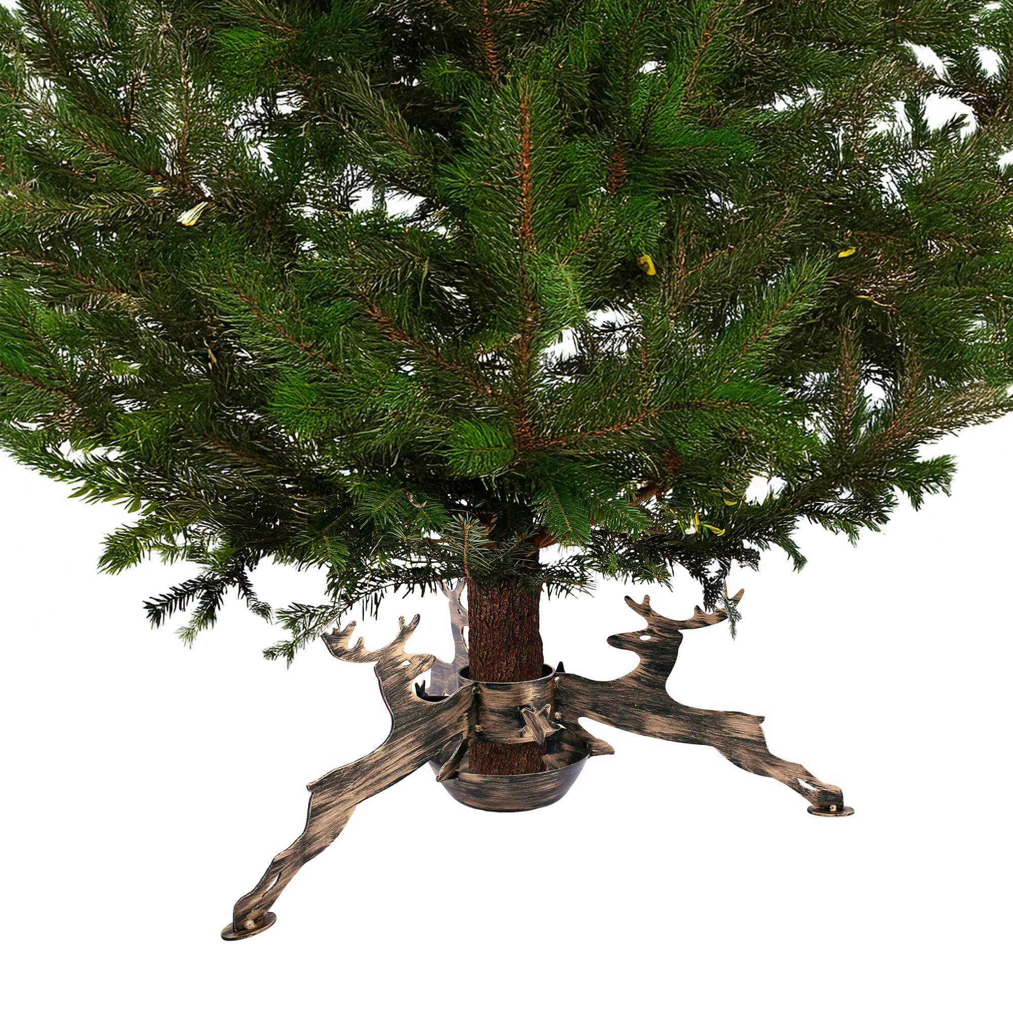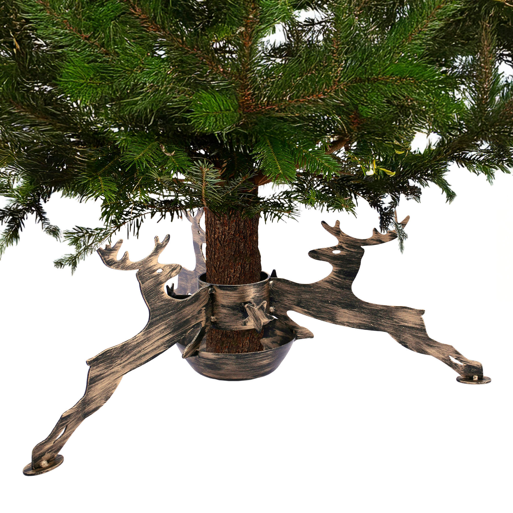 Ein dekorativer Christbaumständer mit Wassertank, ausgestattet mit Schrauben, die den Baum an drei Seiten befestigen.